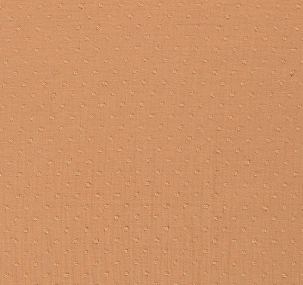 Mousseline stof dobby met stippen in de kleur nootmuskaat.