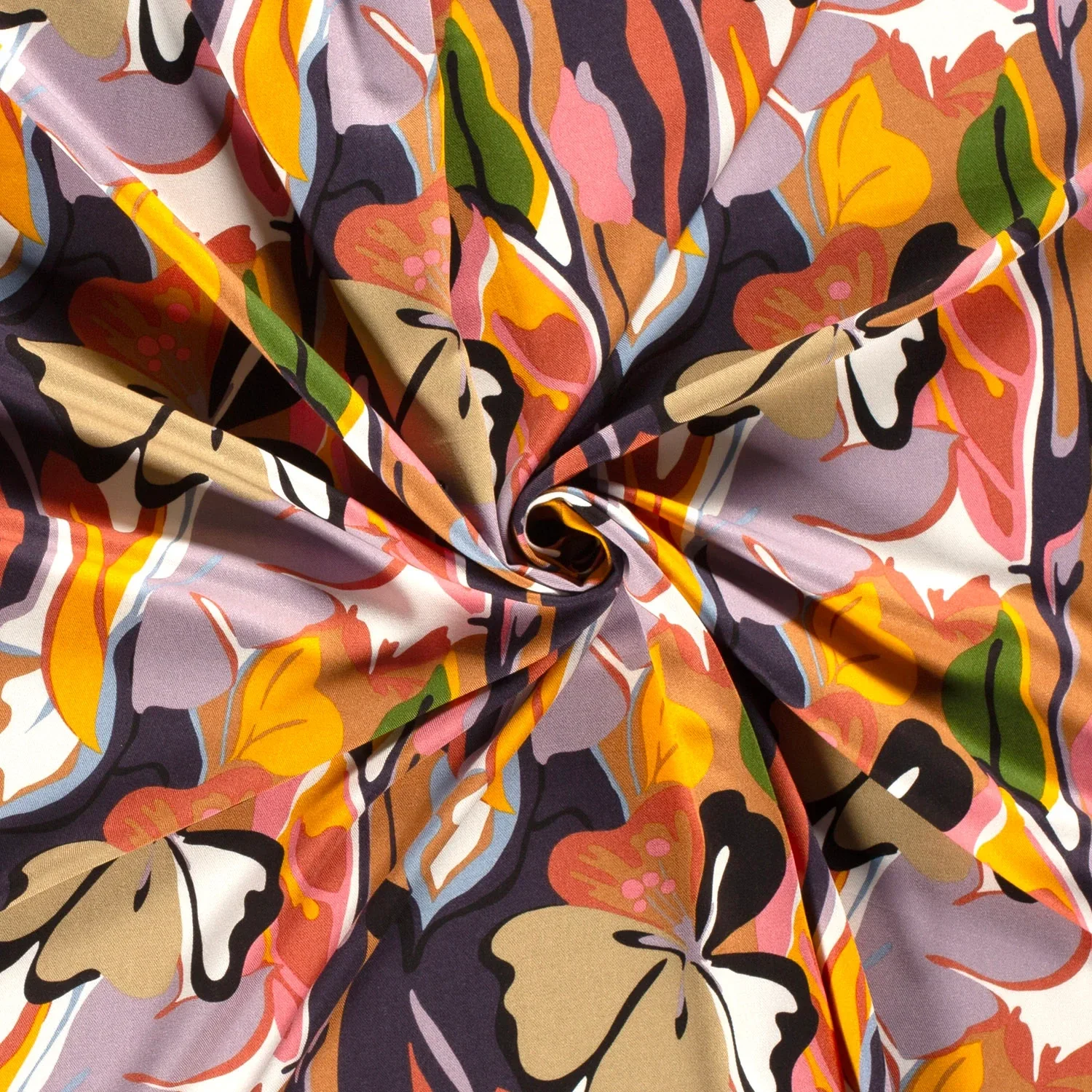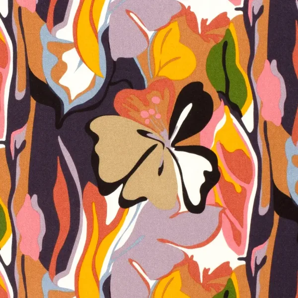 Viscose twill stof bedrukt in de kleur marine.