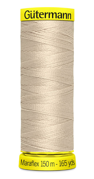 Gütermann Maraflex nr. 120 is een zeer elastisch naaigaren met een mooie glans, bij uitstek geschikt voor rekbare naden in kleding, sportkleding, ondergoed en lingerie of voor decoratieve naden. Met name naden genaaid met (dubbele) locksteek worden zeer elastisch (tot wel 80% rek) zonder dat de naad gaat trekken. Geschikt voor fijne tot middelzware elastische stoffen, zoals jersey, en gebreide weefsels, zoals stoffen met elastaan. Het garen is gemaakt van 100% polyester (PBT) en is dankzij het innovatieve MCT-productieproces (microcore technology) bijzonder gelijkmatig, glad en pluisvrij. Voor optimale elasticiteit is het raadzaam om Maraflex tegelijkertijd als boven- en onderdraad te gebruiken. De aanbevolen naalddikte is NM 70/80. Wasbaar tot 60ᵒC en verkrijgbaar in vele kleuren. Een klosje Gütermann Maraflex nr. 120 heeft een looplengte van 150 meter.